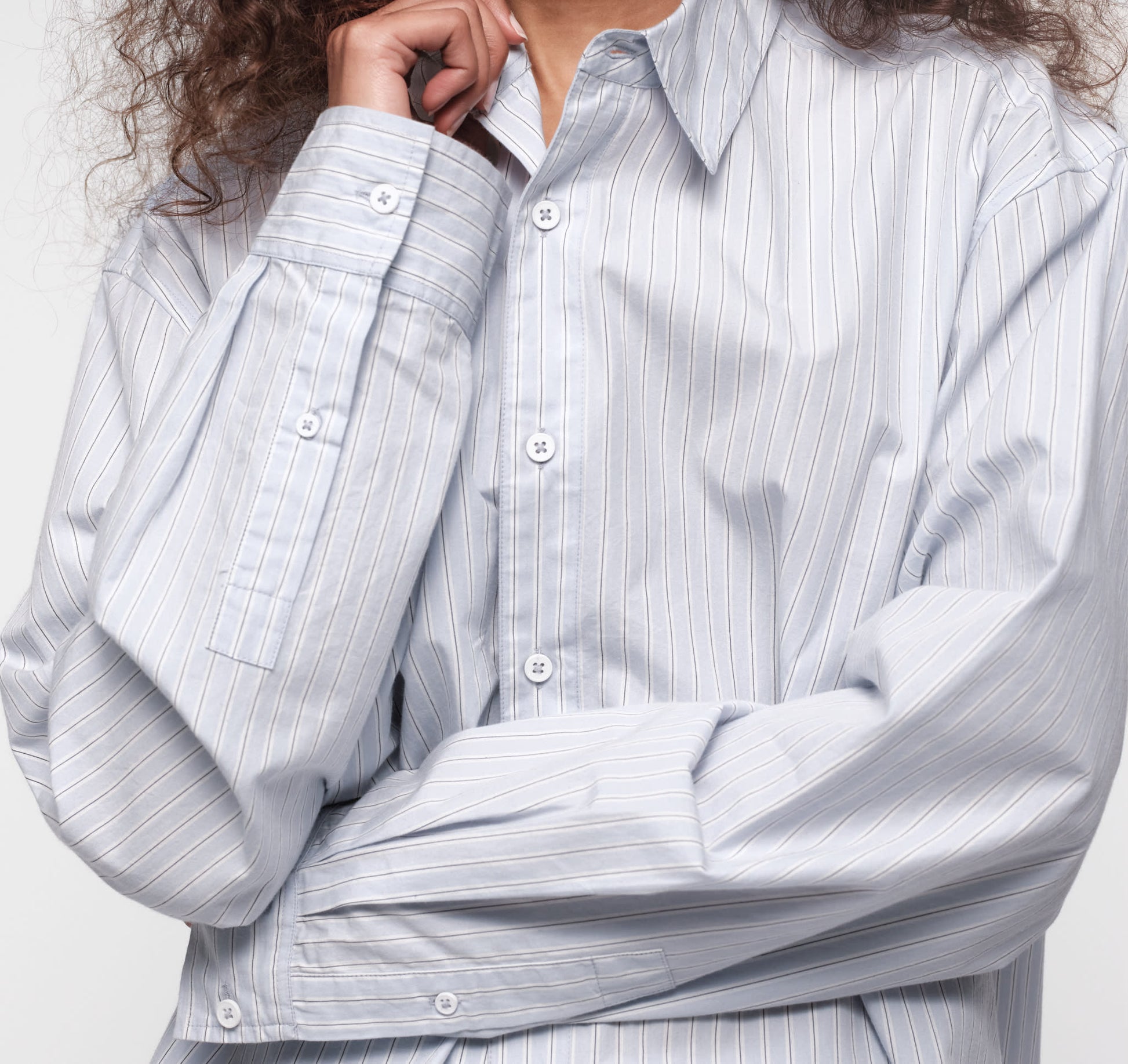 - Oversized button-up shirt with a relaxed silhouette