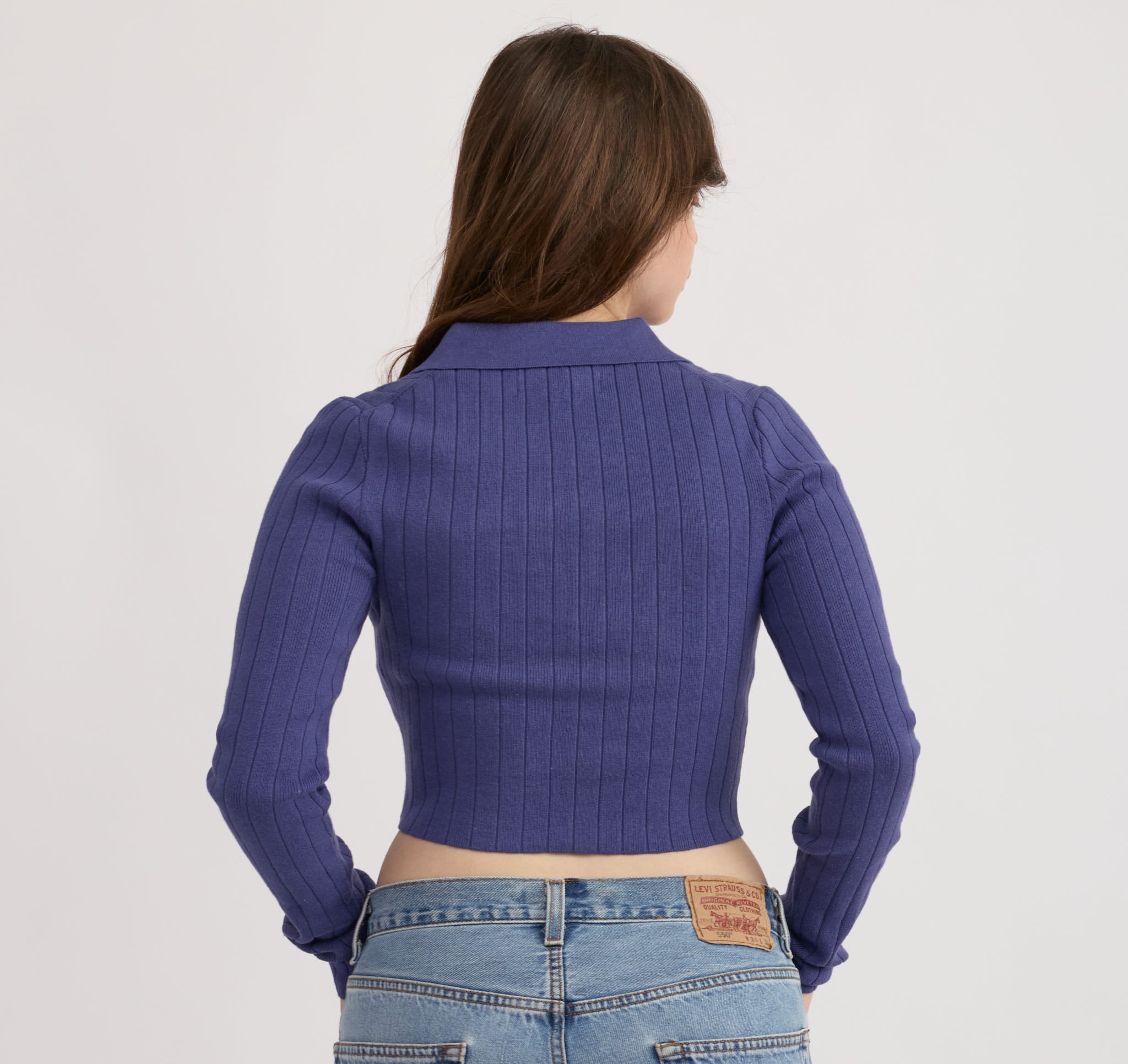 Your not-so-basic polo. Made with 86% organic cotton, it’s soft, stretchy, and finished with a v-neckline and cropped hem that bring just the right amount of edge.