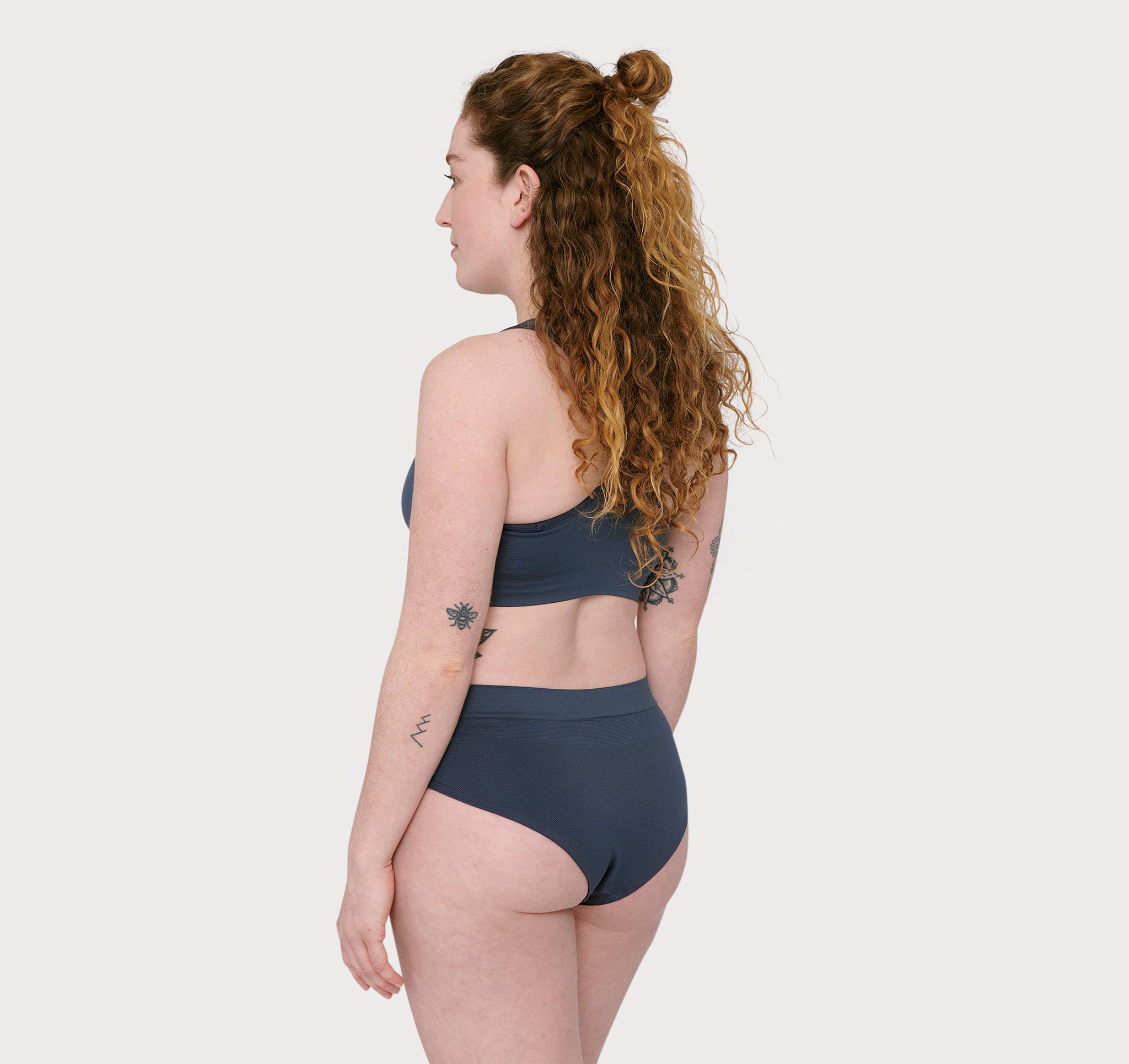 Weicher und atmungsaktiver Hipster-Slip, der zu 57% aus recycelten Materialien besteht. Nahtlos gestrickt für Komfort und ein weiches Gefühl unter der Kleidung.