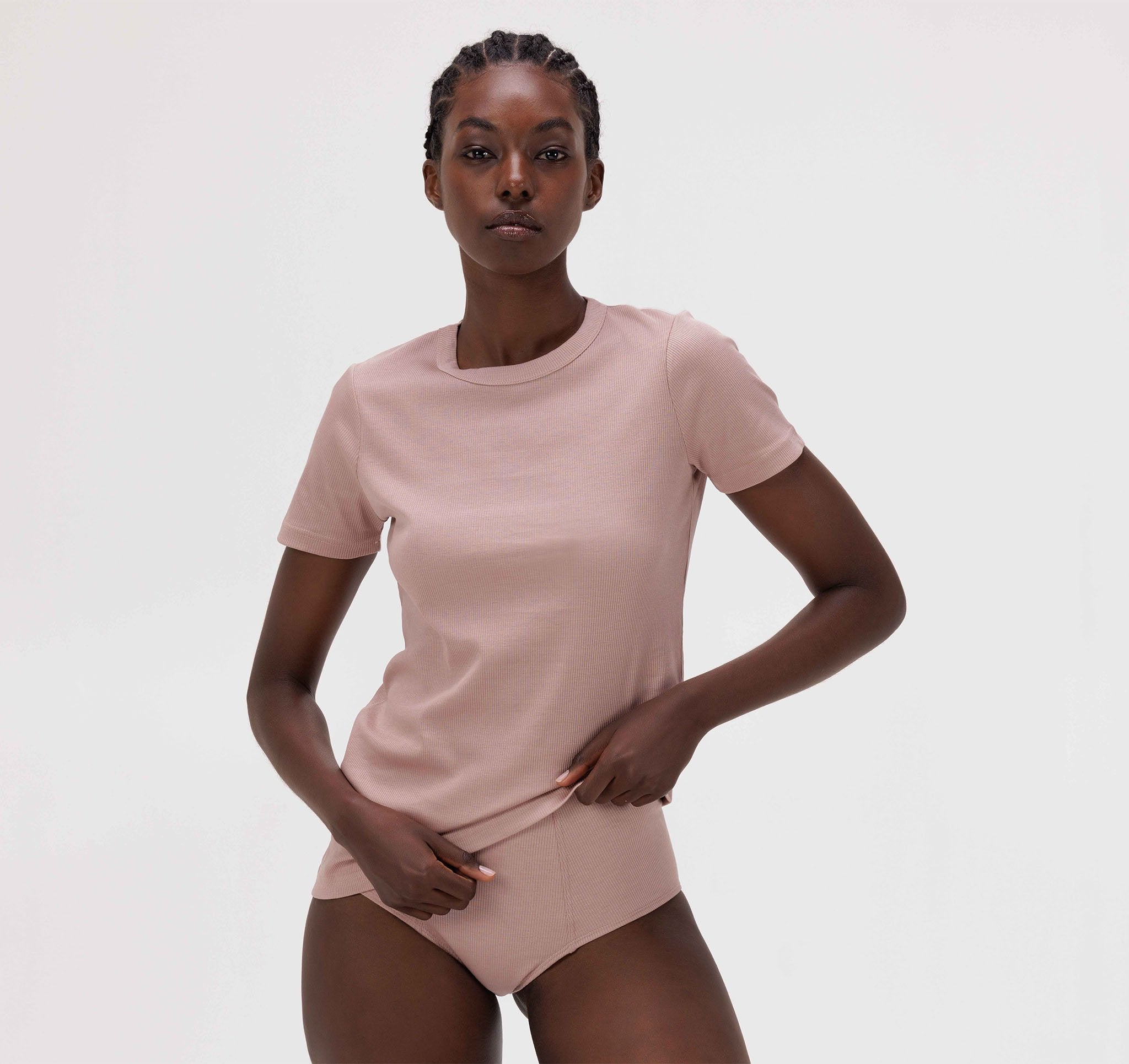 • Crewneck tee made with a ribbed texture, 100% organic cotton