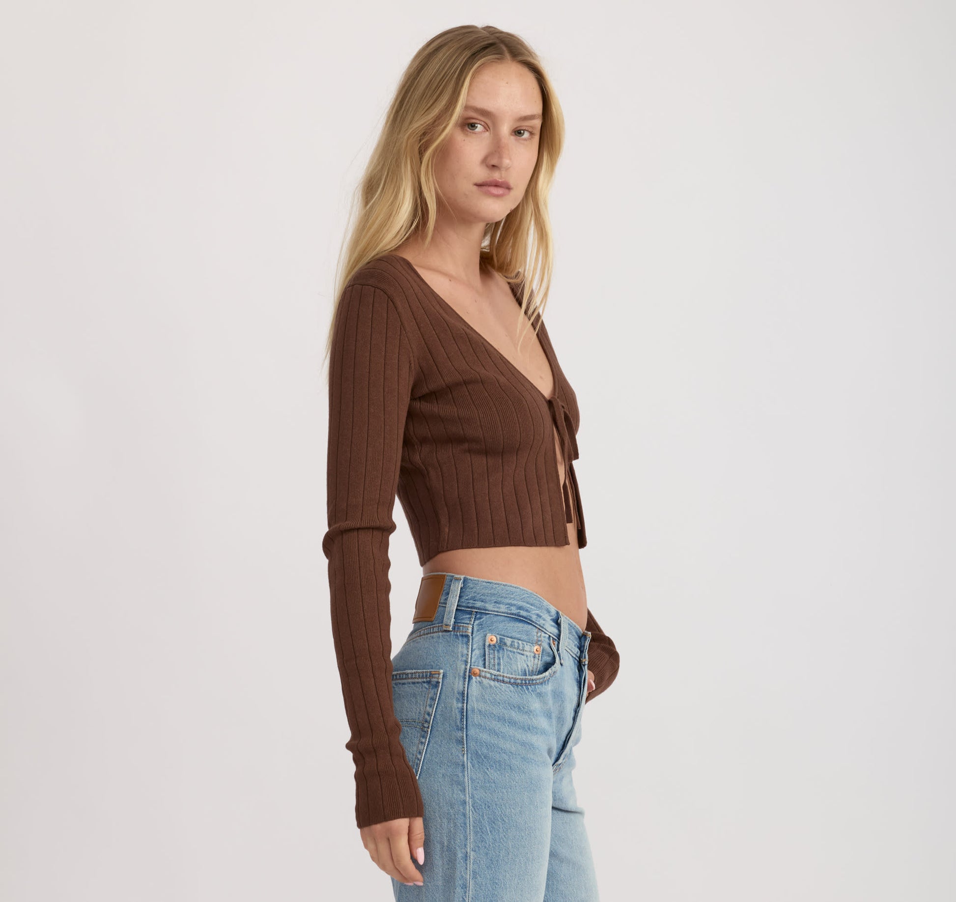 - Cropped long-sleeve cardigan with front tie
