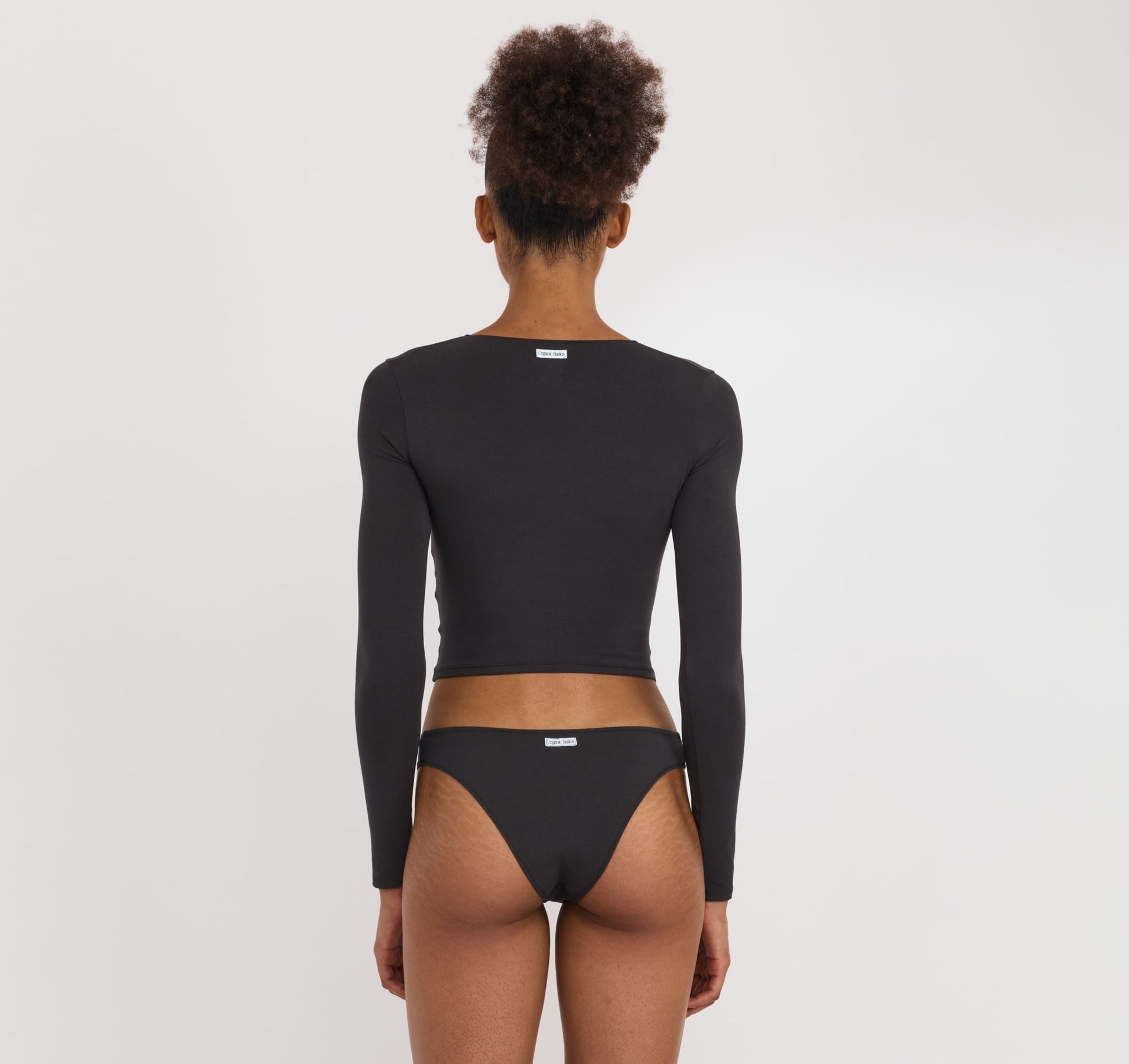 Because it's iconic — and we love creating basics you can dress up or down. This bustier-style top features an open neckline and a tailored bust effect, all in a soft, stretchy fabric made with 90% organic cotton.