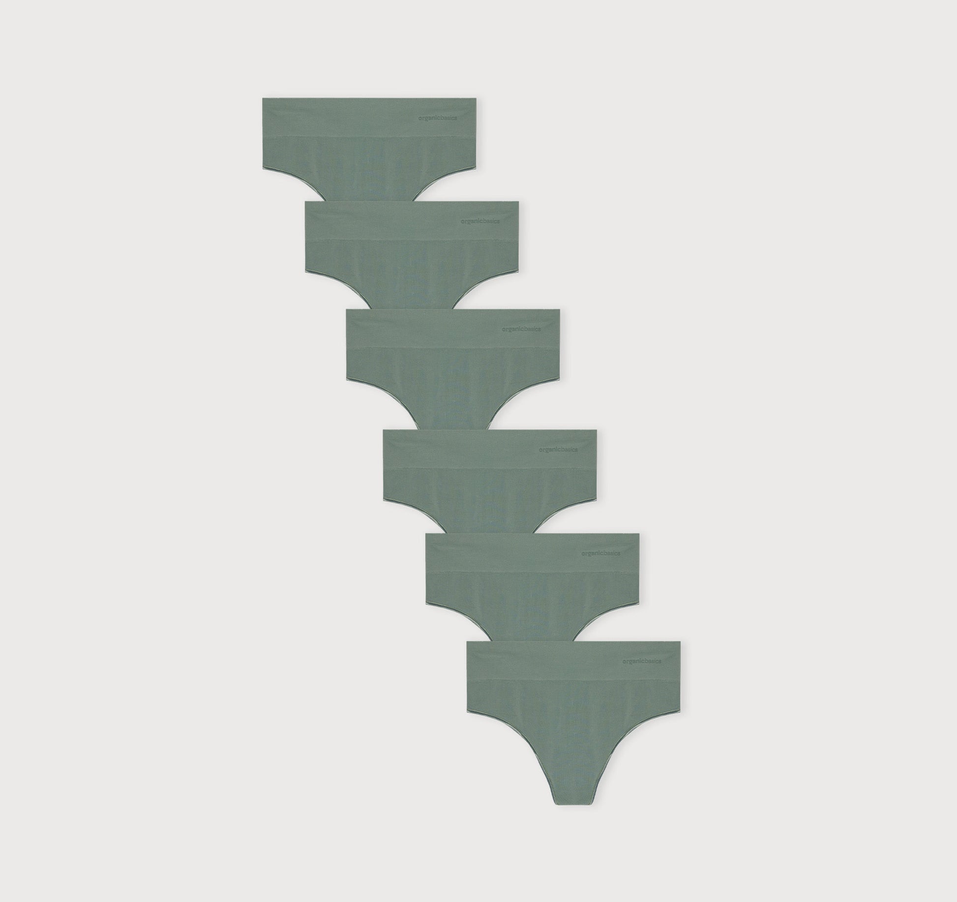 A 6-pack of seamless thongs made in a soft, sleek, and smooth recycled material. Features a thicker seamless waistband and high-leg cut for an ultra-flattering fit.