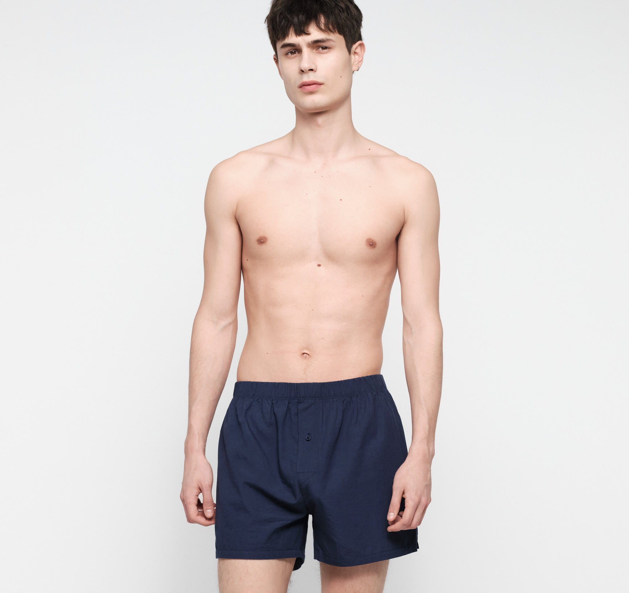 Loose-fitting boxer shorts.