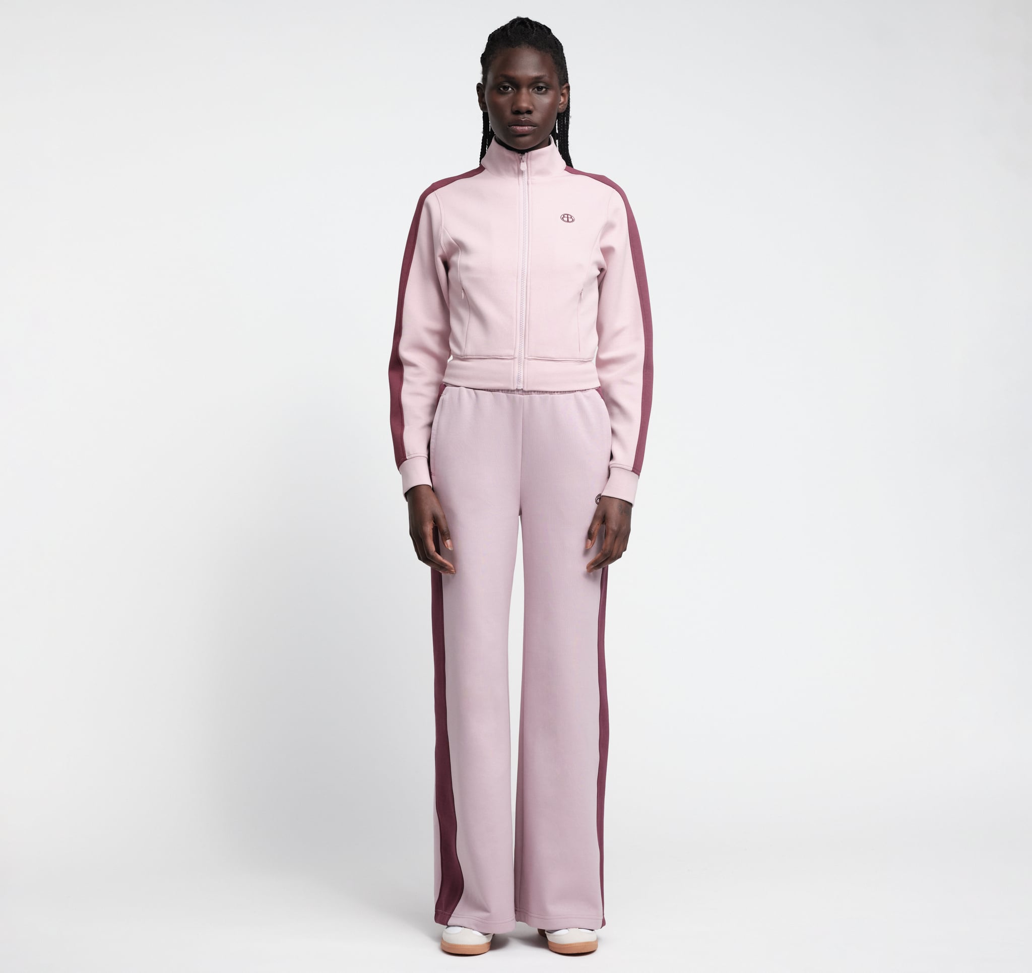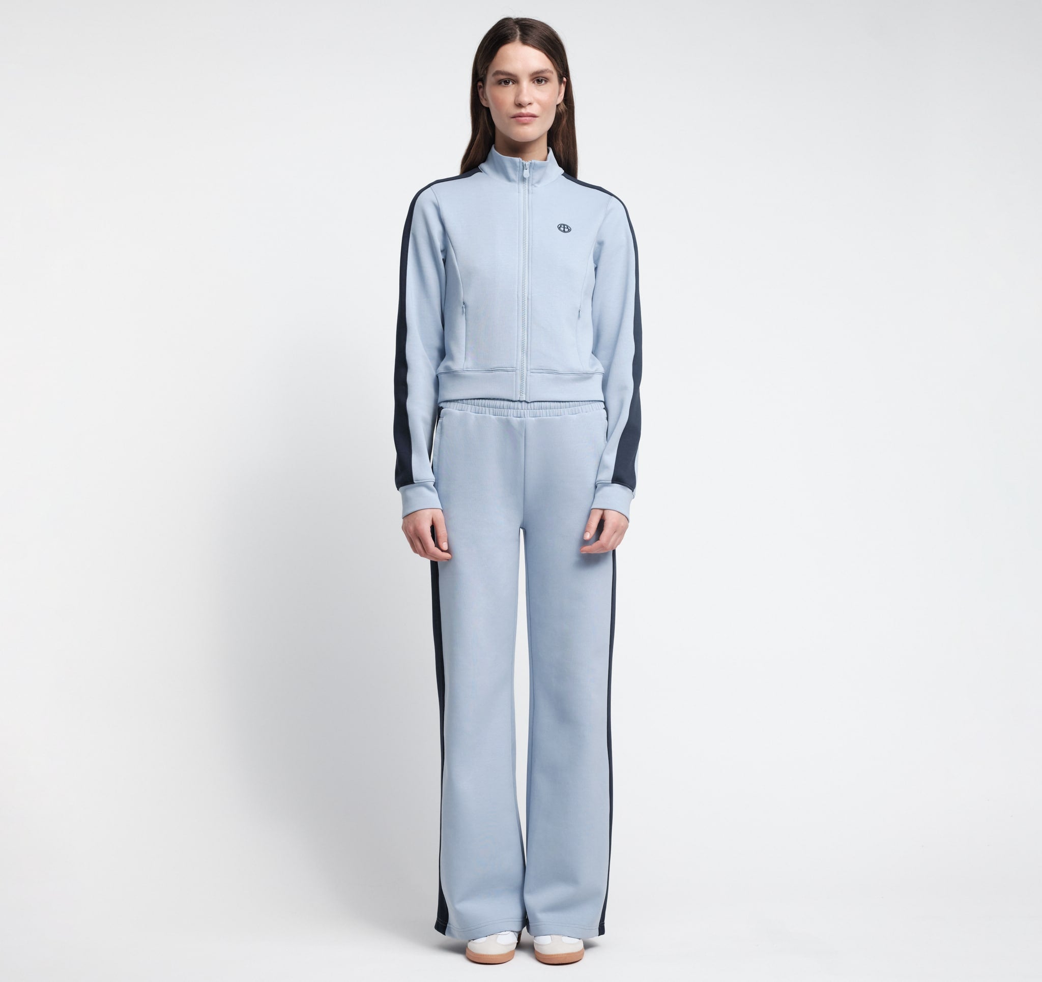 • Contrast color stripes down the sides for a sporty look
