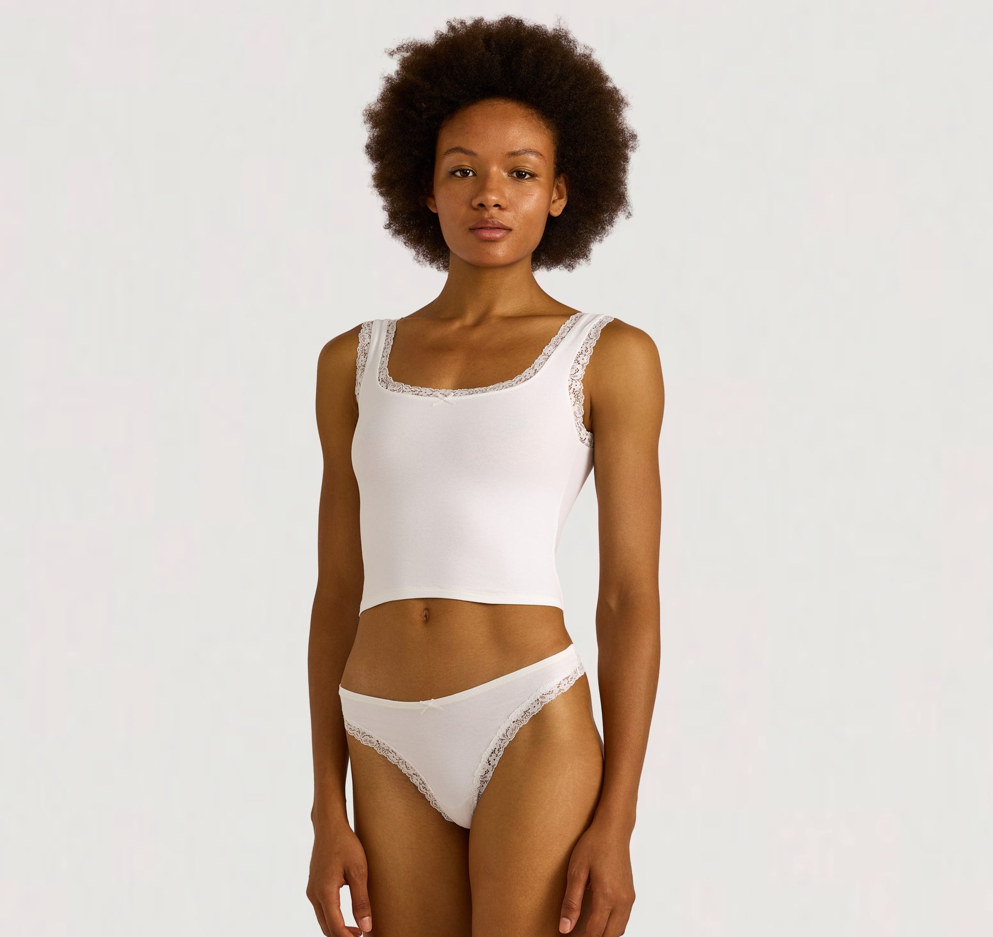 A flirty little staple with lace trim and a dainty ribbon bow. The Flex Lace Thong is comfy, cute, and ready for everyday.