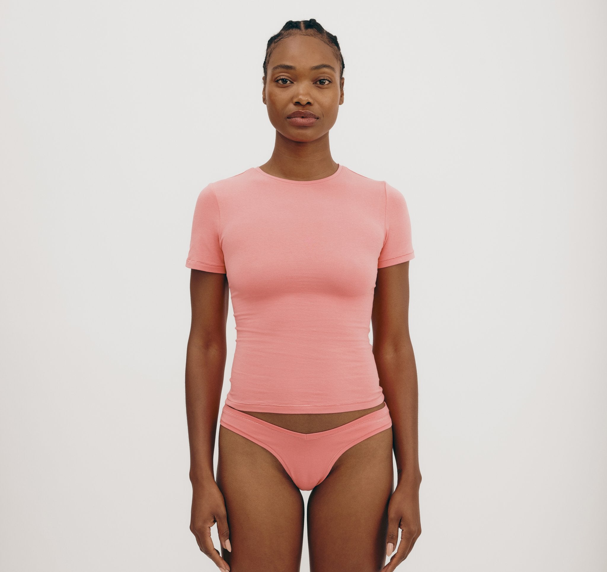 Cotton is a natural fiber that is commonly used for its breathability and softness. Using organic cotton instead of regular cotton has the potential to build soil health, as it is grown without the use of synthetic fertilizers. - 91% Organic Cotton - 9% Elastane - Machine washable with similar colors. Maximum 40°C wash - We recommend the conscious choice of 30°C - Snug, body-hugging fit in a soft and stretchy material. If between sizes, we recommend sizing up