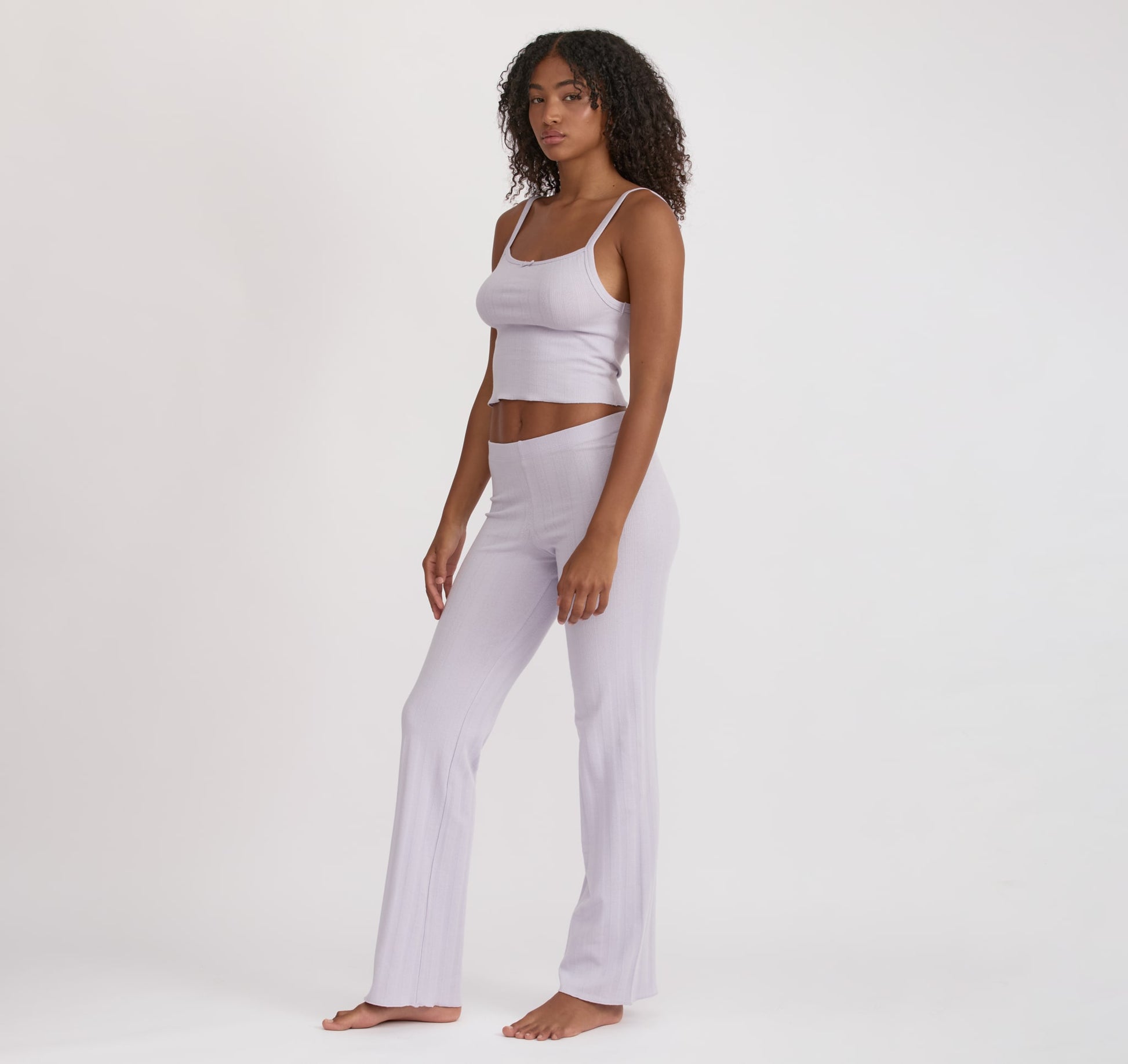 From cottage to campus. Body-hugging Pointelle knit pants in a cozy, breathable blend made with 97% organic cotton and a touch of stretch.