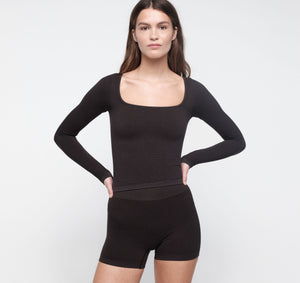 Plush, fitted, and easy to wear. A soft waffle knit with a clean square neckline that moves effortlessly between lounge and heading out.