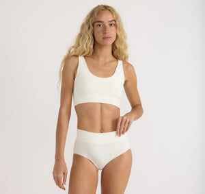 Using recycled materials can help reduce the impact of its production by conserving resources and diverting waste from landfills. Our recycled nylon is typically made with pre-consumer waste. Known for its durability, nylon can withstand frequent washing and wear without losing its shape. - 90% Recycled Nylon, 10% Elastane - We recommend using a GUPPYFRIEND Washing Bag, as all synthetic products release plastic microfibers into the environment during washing. - Mild, fine machine wash at 30°C - Line dry. Do not tumble dry - Iron at a low temperature - Do not dry clean