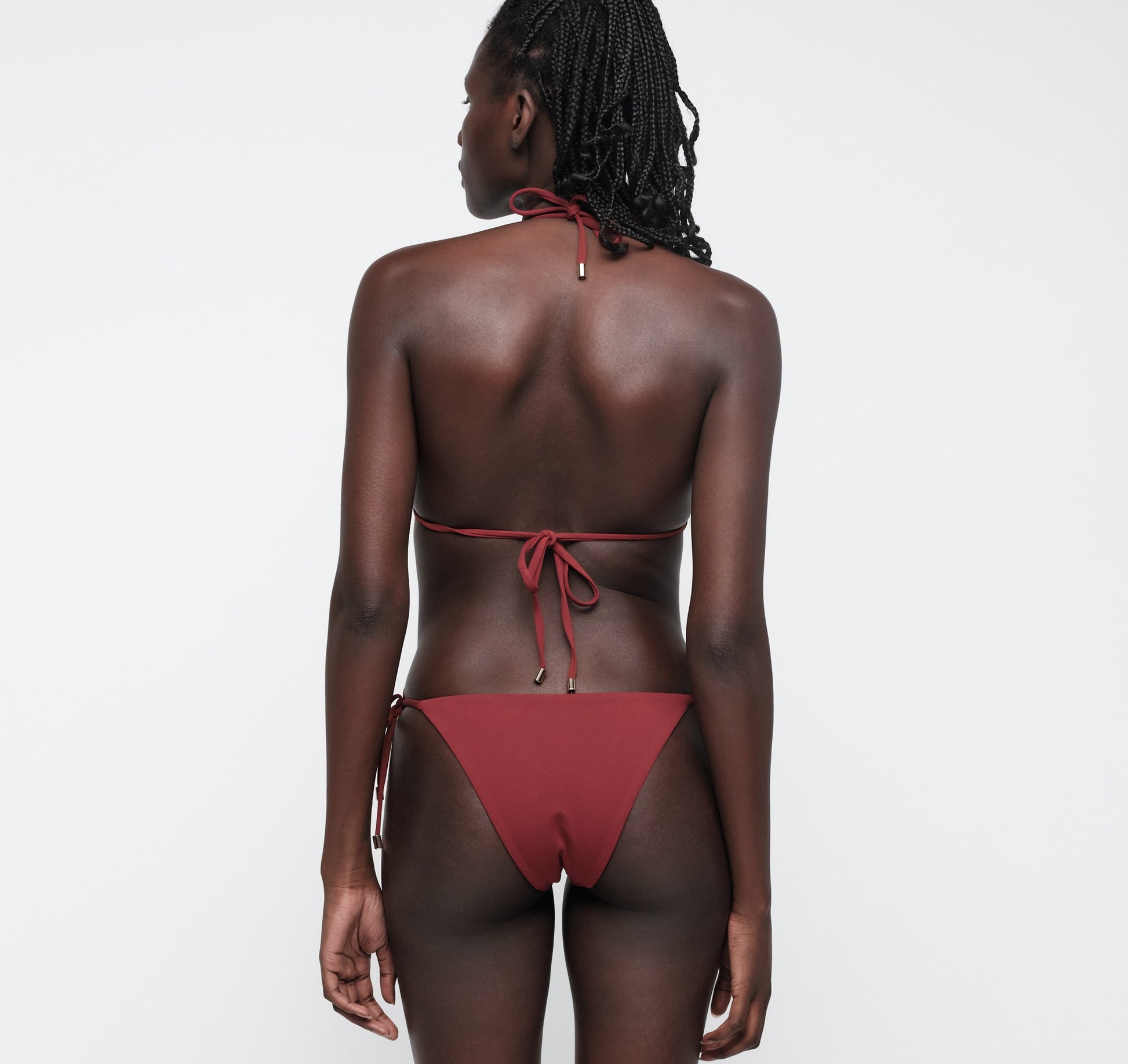 The classic string bikini style you know and love. Featuring triangle cups, adjustable tie straps, and room for cleavage in the front and sides. Size up or down for your desired coverage in our soft and sleek tie bikini top.