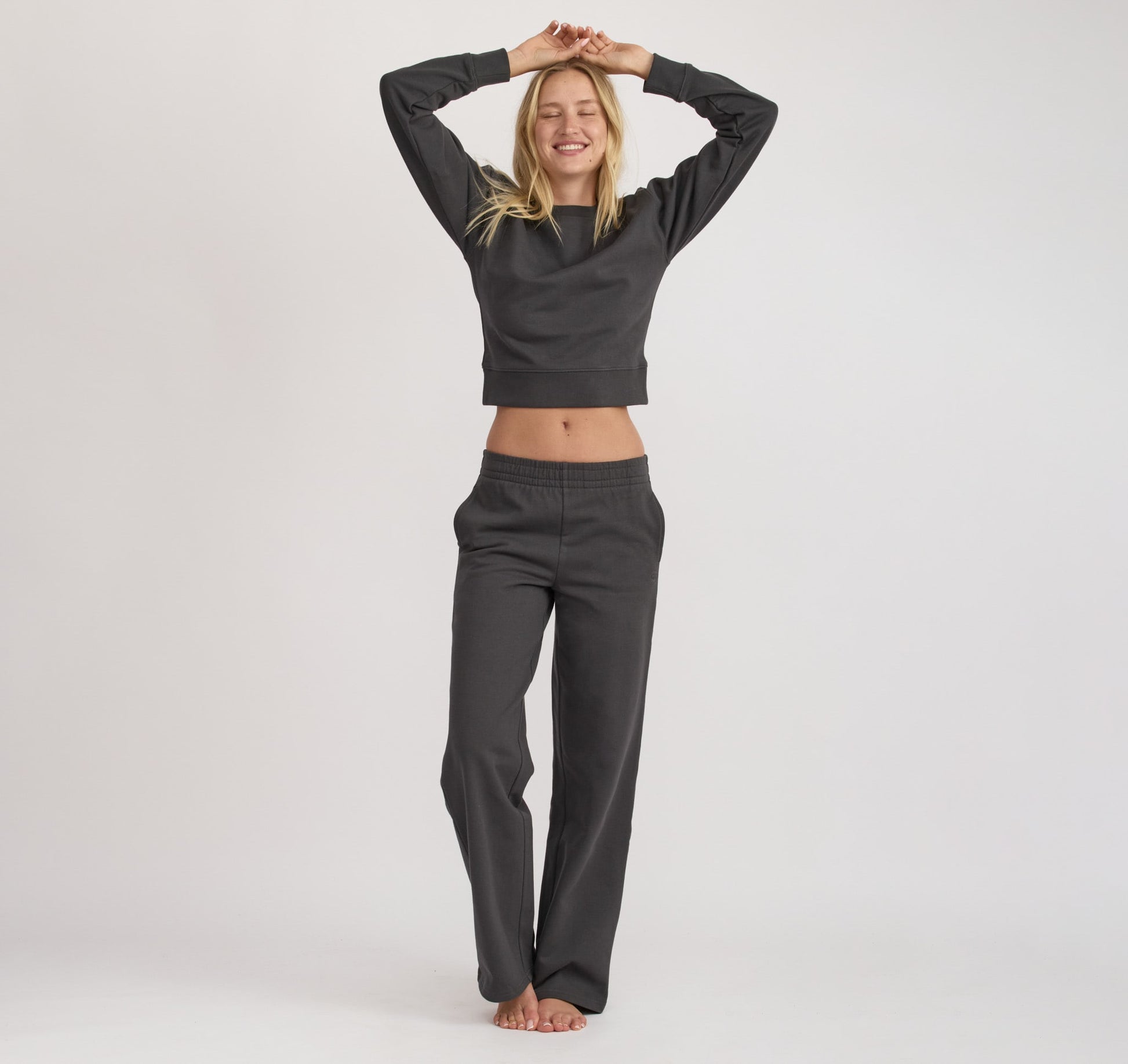 • Slightly dropped shoulders for a relaxed, lounge-ready fit.