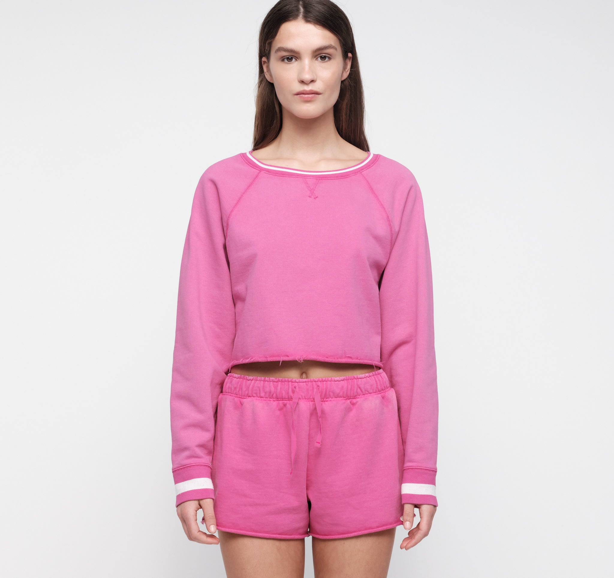 A soft French terry fabric with an unbrushed finish for a breathable, lightweight feel.